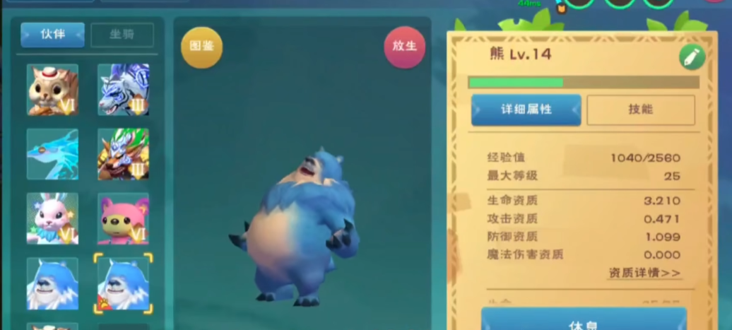 驯服后的熊不仅能帮你战斗,还有一些实用技能哦!比如耐寒技能可以让你在雪山探险时不用怕冷,耕地丰收技能则能让采集到的作物数量翻倍。如果想进一步提升熊的能力,还可以通过进阶石来强化它,进阶后的熊技能效果会更加强大。
