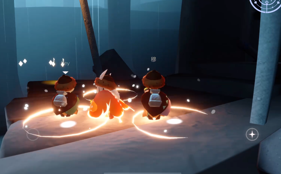 第五个任务再次回到荧光森林,树屋上方存在两个打坐点,需双人同时触发。任务目标是收集高空吊床碎片,飞行高度要求较高,建议携带充能道具。完成零件收集后通过下方传送门返回提交。第六个任务位于密林遗迹,虽然是单人任务,但携带伙伴有助于充能。右侧树屋新增打坐点触发后,需按鸟群飞行方向触碰空中圆圈完成画框收集。