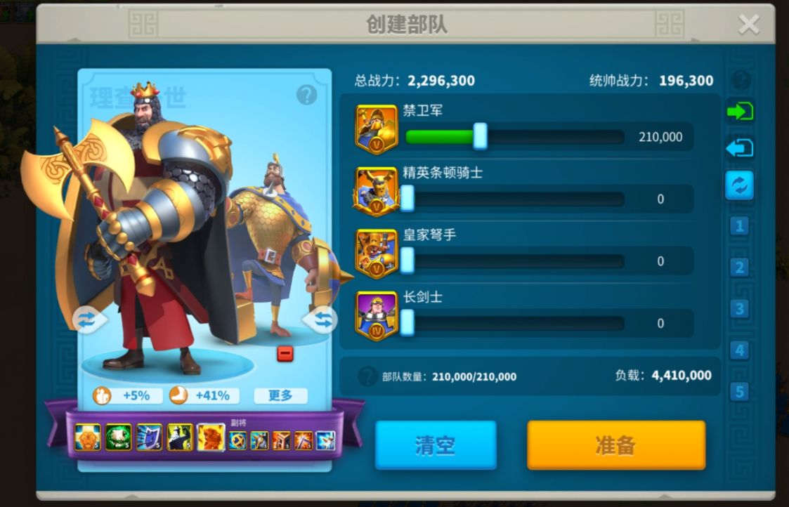 远征75关的核心关键在于合理配置武将组合与兵种搭配。推荐使用主埃塞尔副曹操的组合,开25扩编并开启增益,携带15000T4步兵、15000T4弓兵和10T4车兵,剩余兵力全部配置骑兵。这种混合兵种配置能有效应对关卡中的多样化敌人。双查组合需要单独编队,在集结部队前先行接触敌方城池,其余三队建议搭配贞德、花木兰、拜巴尔和艳后等武将,根据已觉醒武将进行灵活组合。