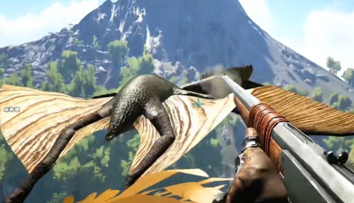 古神翼龙的鞍具需要55级解锁,材料需要大量兽皮、木头和金属锭。驯服后你会发现它特别实用,不仅能搭载三名小伙伴,还能垂直起降和攀附在悬崖或树上。驾驶时按C键可以垂直降落,X键垂直上升,空中打开背包会自动降落。它的泰克鞍还能开启炮台模式,用能量元素作为弹药,非常适合团队作战。