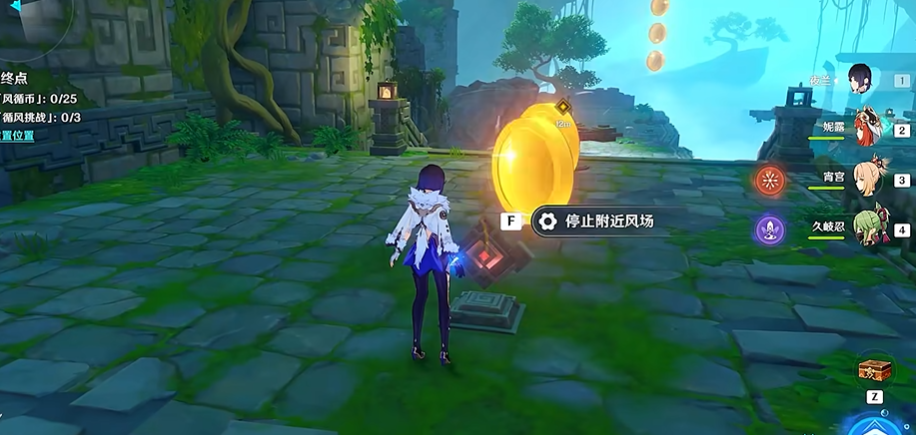 活动场景中存在浮风台、下沉平台等特殊地形,部分风循币位于边缘位置需谨慎操作。使用温迪、万叶等具有空中机动能力的角色可简化部分流程,但并非必要条件。若遇到收集困难,可反复调整拦风枢风向,利用风场反复尝试获取高处物品。所有机关交互均有冷却时间,需合理安排操作顺序避免等待。