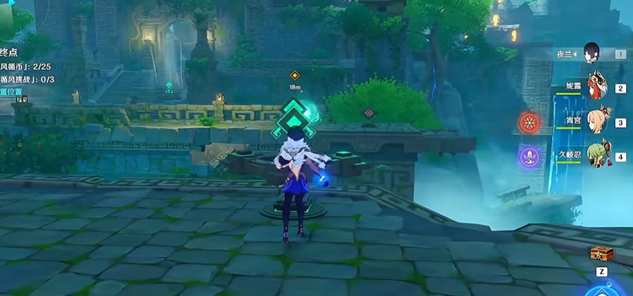 最终阶段需返回初始止风枢位置,沿途调整拦风枢朝向并收集剩余6枚风循币。虽然场景中共有30枚风循币,但只需收集25枚即可达成奖励条件。三个循风挑战必须全部完成,每个挑战需在限定时间内收集散落的风元素微粒,建议优先停止干扰风场再按固定路线快速收集。多人模式下需确保两名玩家同时抵达终点才能结算奖励。
