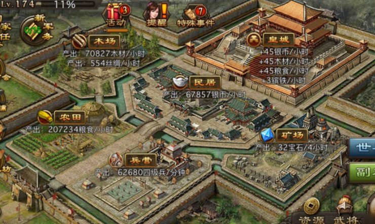粮食是维持军队运转的核心资源,一旦短缺就会影响整体发展。想要避免缺粮,关键在于平衡产出与消耗,同时利用多种途径稳定获取粮食。优先升级农田设施,这是最基础的增产手段,农田等级提升,每小时产量会显著增加。平时记得按时领取整点奖励和挂机收益,这些都能带来稳定的粮食补充。