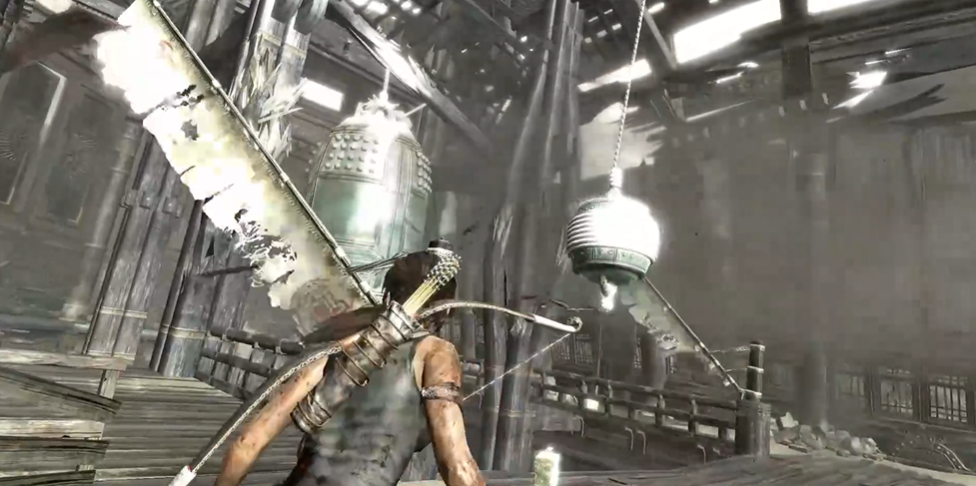 首先咱们得搞定那个烦人的大钟机关。你会在寺庙里看到一个巨大的钟和两扇可以开关的窗户,窗户边上有旋转机关。先别急着乱动,咱们得一步步来。记得先打开左边那扇窗户,这时候会有强风吹进来,然后用弓箭的绳索功能把大钟拉过来,让它借助风力撞断右边的木柱子。搞定一边后,记得把左边窗户关上再开右边窗户,同样的方法撞断左边柱子。最后两扇窗户都打开,站在钟正前方拉动小钟撞击大钟顶部,大钟就会掉下来砸开地面露出后面的山洞入口啦。