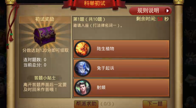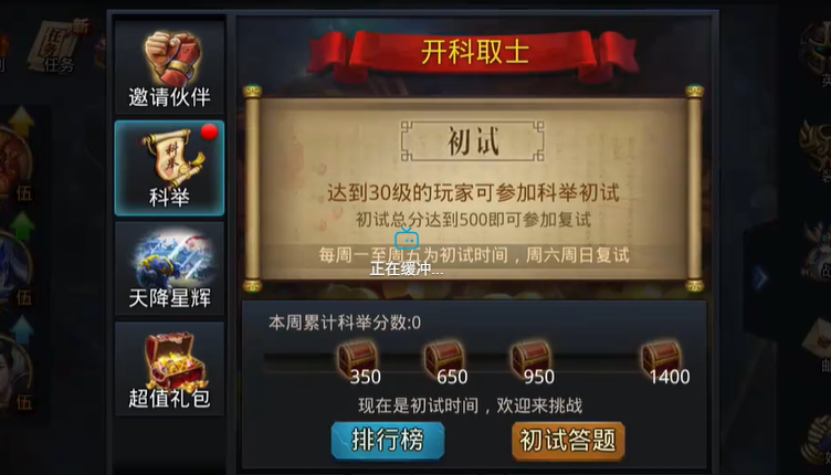 科举系统是游戏内一项兼具知识性与竞技性的玩法,分为初试、会试、殿试三个阶段。玩家需达到30级方可参与,报名需在主城找到指定NPC福星完成手续,包括提交资料和缴纳少量报名费。报名成功后需留意考试时间,错过将无法参与当次考试。初试阶段为周一到周五每天8:00-24:00开放,需回答10道题目;累积答对35题以上可获得周末复试资格。