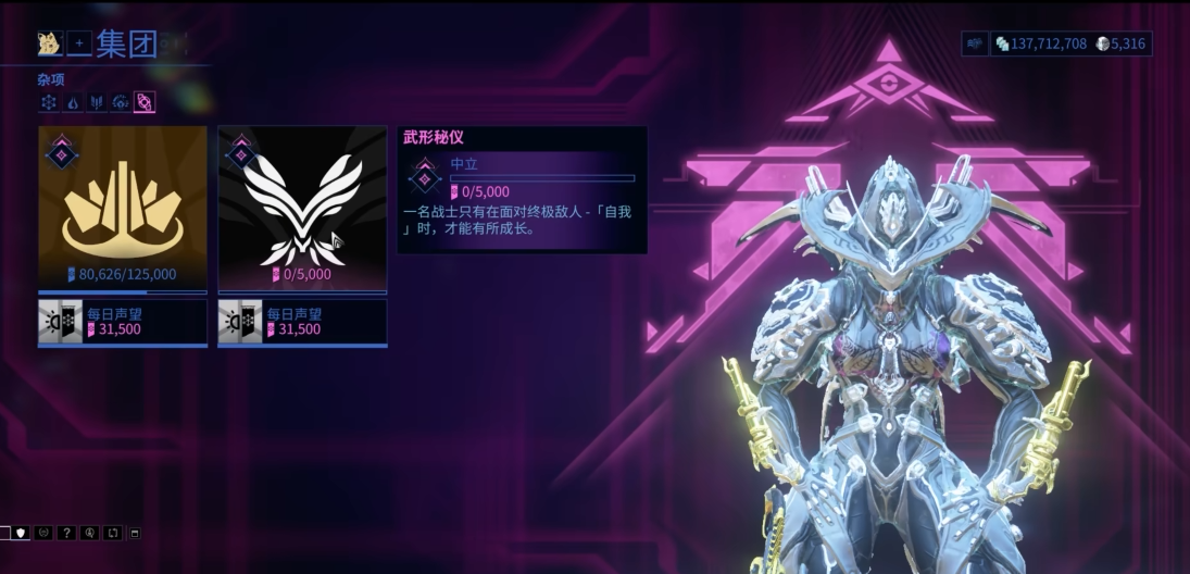 接下来要刷集团声望,这是解锁高级装备和资源的必经之路。六大集团的每日任务尽量做完,佩戴对应纹章能额外增加声望获取速度。平原地区的赏金任务也是声望来源,比如地球的夜灵狩猎或金星的蜘蛛挑战。声望有每日上限,优先完成高收益任务。如果时间紧张,可以专注刷大黄脸的结合扫描任务,既能拿专精点数又能换声望。