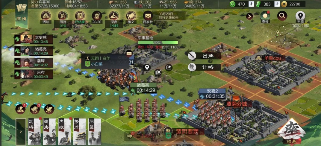 攻城前记得提前铺路,毕竟游戏规定只能打自己或盟友旁边的地。铺路时别傻乎乎地一路占到底,那样太浪费资源。聪明做法是边铺边拆,只要保证目标城池旁边有一块自己的地就行。士气也很关键,长途跋涉的部队士气会掉光,战斗力直接打七折。所以后勤部队得提前出发,在攻城路线旁建好营帐,让主力部队能快速恢复状态再开打。
