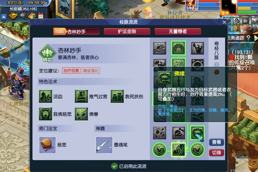 灵饰、特效和经脉系统的合理运用可以进一步放大治疗能力。灵饰方面建议选择带有双治疗属性的,这样能直接增加治疗能力。特效中的回春之术可以大幅提升治疗量,所以玩家可以尽量凑齐这类特效。经脉的选择对治疗能力有显著影响,比如点出惠泽和铭形等经脉点,能够提升治疗强度和法术防御。如果队伍中只有一名化生寺,选择空渡经脉还能额外增加治疗结果和抗封印能力。化生寺的速度通常只要比队伍中的输出快百分之十左右就足够了,这样可以在输出出手前及时提供治疗。
