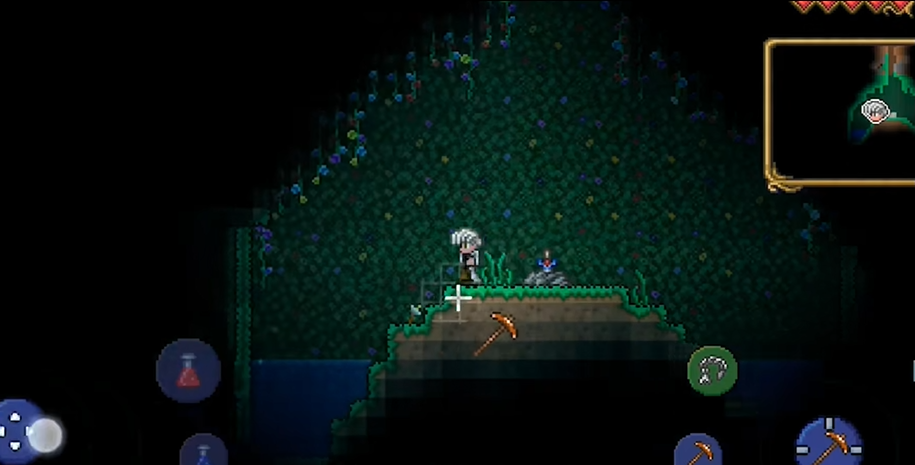 剑冢是生成世界时随机出现的,但它的位置并非完全无迹可寻。剑冢有很大几率出现在靠近海洋的森林区域,或者是在丛林与湖泊的交界地带。如果你在地图上看到一片形状有点类似肺部的特殊地形,那很可能就是剑冢的藏身之所了。它的入口往往非常狭窄,是一条细细的垂直竖井,当你顺着挖下去,会发现洞穴空间逐渐变得开阔,最终抵达那个藏着石中剑的小空间。