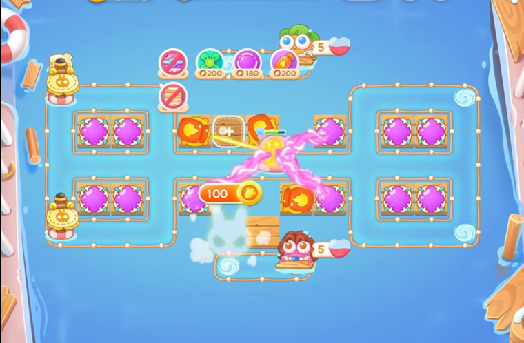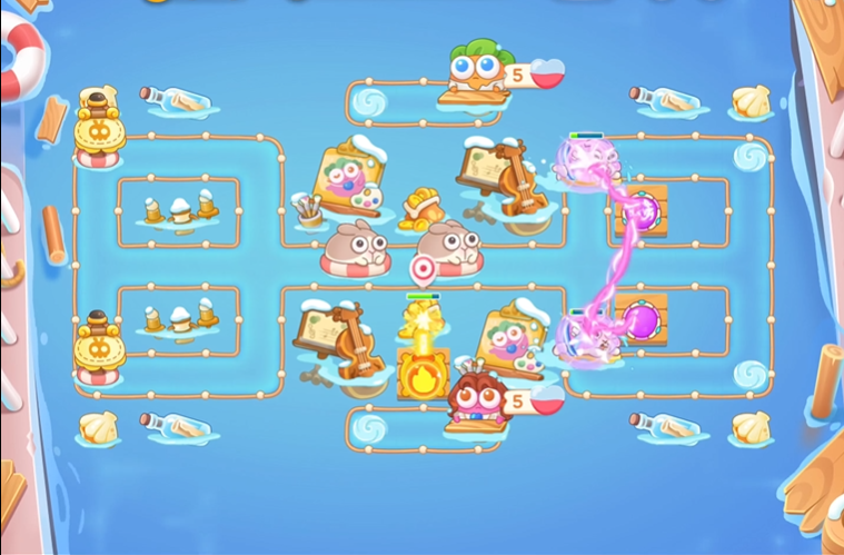 游戏初期阶段玩家应优先在关键路径位置部署基础炮塔,例如在顶部偏右区域放置薯条炮塔,并在中间区域部署烟花炮塔,以快速应对第一波敌人并清理障碍物。初始布局需注重炮塔的升级,及时提升等级以增强火力输出,防止早期漏怪。利用炮塔的攻击范围覆盖怪物行进路线,确保在清理障碍物的同时不忽视防御。