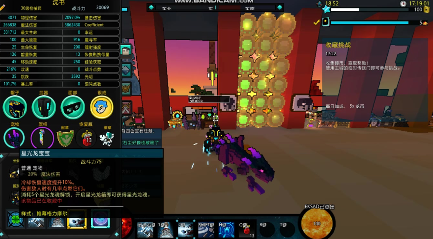 一些实战中的技巧能让你更稳定地打出高伤害。由于枪械师防御较低,保持安全距离是关键。对抗没有远程攻击的敌人时,可以跳到其头顶,利用高跳跃属性和爆炸跳跃技能实现空中滞留,进行持续攻击。面对远程攻击的强力BOSS时,则可以利用游戏内的建造功能,在墙壁上搭建带有掩体的高台,从侧面进行输出,这样可以有效规避弹道伤害。大招狂热弹幕开启后会提供巨额攻速加成,在这期间配合药水能打出毁灭性的爆发。
