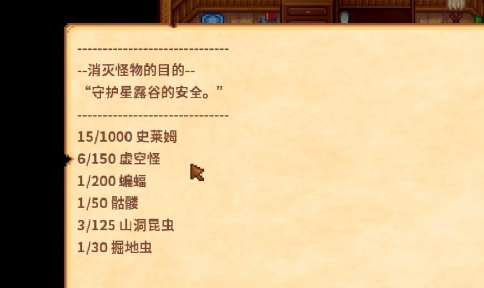 冒险者公会设定了多种怪物消灭目标,玩家在矿井、骷髅洞穴等区域击杀特定种类和数量的怪物后,即可返回公会领取专属奖励。这些目标按怪物类别进行划分,例如史莱姆类怪物包含所有颜色变种,累计消灭1000只后可获得能完全免疫史莱姆伤害的史莱姆克星戒指;虚空烈酒类目标涵盖暗影萨满与暗影狂徒,消灭150只奖励野蛮人戒指,效果是击杀怪物后获得2秒的速度提升。