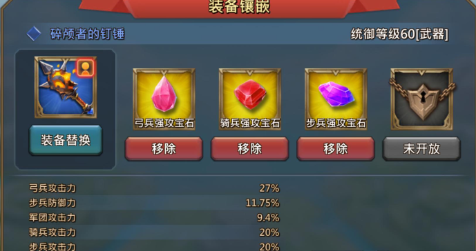 装备和宝石的搭配是提升双兵陷阱威力的关键一步。头盔可以选择云龙头盔或布莱斯头盔,衣服用木马屠城衣服性价比就不错。宝石镶嵌方面,步兵、弓箭手和骑兵的强攻宝石最好都能升到金色品质,其他那些花里胡哨的野怪宝石就先别考虑了。一个金色宝石能拆出四个紫色的,所以慢慢攒着升级不用着急。装备品质够用就行,紫色水准也能发挥不错的效果。