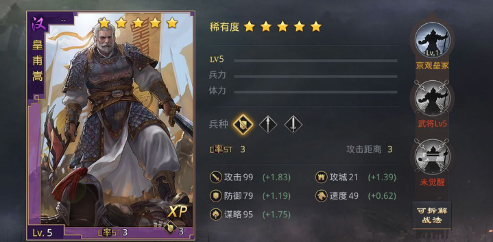 皇甫嵩的配点核心在于围绕其自带战法京观垒冢的触发机制,并紧密结合你为他准备的其他战法以及整个队伍的需求进行集中加点,切忌属性过于分散以最大化输出或特定效果。加点前必须明确你希望皇甫嵩在队伍中扮演物理输出还是谋略输出的角色,抑或是需要他满足某些特定的属性条件来触发队友的技能,因为他的攻击与谋略成长相近,具备了双修发展的潜力,但实战中通常需要专精一项。