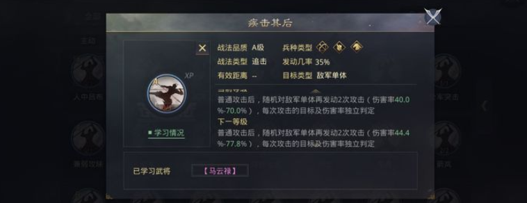 配点时还需充分考虑队伍的整体搭配和连锁效应。例如在经典的爷爷队或与陆抗搭配的体系中,皇甫嵩往往需要保证自身的攻击属性或谋略属性是全队最高,这样才能稳定触发陆抗西陵克晋战法的追加伤害效果,此时加点必须高度集中,确保属性不被队友超越。如果队伍中已经有其他核心输出,皇甫嵩也可以承担辅助输出的角色,此时加点可以稍显均衡,但依然要保证足够的属性来维持京观垒冢的触发频率。他的站位也会影响加点倾向,担任前锋时可能需要适当补充防御或谋略来增强生存,但输出能力始终是优先保障的方向。