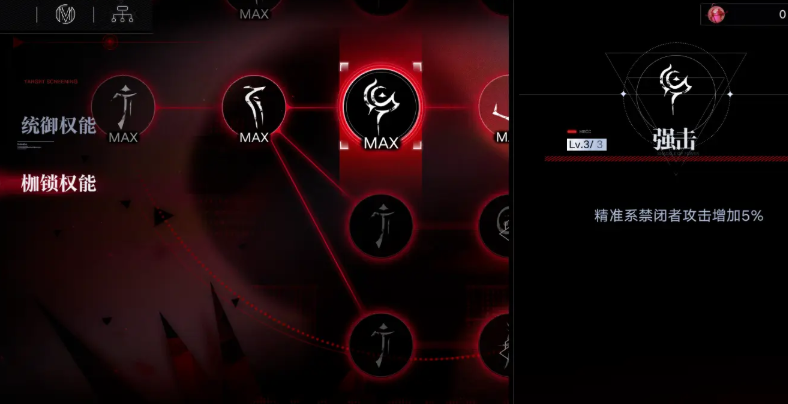 枷锁权能的升级策略应当依据玩家主要培养的禁闭者系别进行有针对性的分配,例如专注于精准系或狂暴系禁闭者时,优先升级对应的远程或近战属性加成节点。枷锁权能通过线性天赋树结构呈现,必须将前置权能点满后才能解锁后续选项,因此在规划升级顺序时需考虑长期培养目标。玩家应根据自身阵容的核心禁闭者类型,合理选择升级路径以最大化属性收益,并在游戏后期确保所有节点被点满,以避免出现解锁限制影响整体发展。