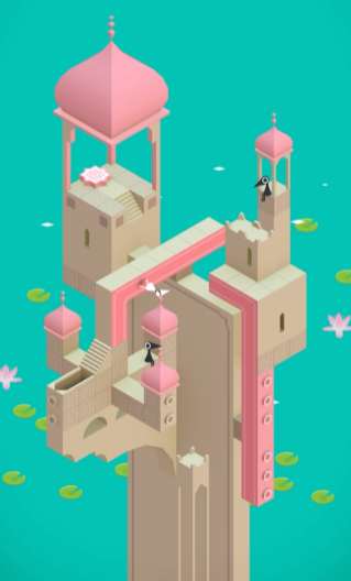 在调整建筑方向后,通过微小的逆时针或顺时针旋转操作,可以在当前看似断开的路径处创造出可以前进的新通道。沿着新通道引导艾达前往建筑顶端的另一个橙色按钮机关处,踩下它将激活另一条新的粉色通道。这条通道通常会引领艾达进入一个包含两只乌鸦人的新建筑内部,在此场景中,所有粉色的、带有圆点标记的方块都是可以活动的,解谜进入了最终阶段。通关的核心思路是系统性地旋转这些活动的粉色积木块。通常需要先逆时针旋转艾达所站的积木至垂直状态,使其能与上层的结构相连。操作左侧十字型的副楼建筑或相邻的粉色积木,通过数次旋转,不断调整各个模块之间的相对位置与连接关系。最终目的是将这些可活动的建筑部件像拼图一样组合,连通一条从艾达当前位置直接通向终点出口的完整路径,完成整个水宫关卡的挑战。