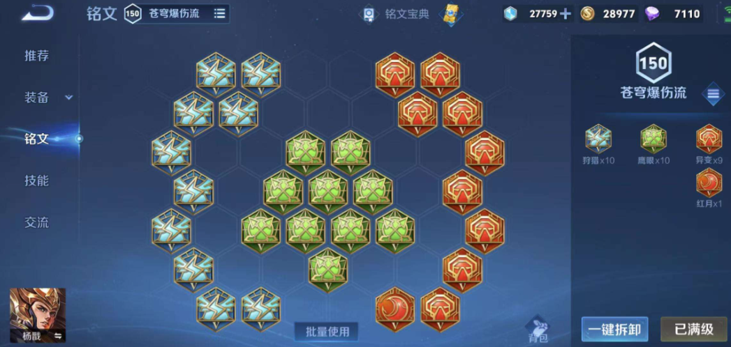 要发挥这套最强出装的威力,必须搭配正确的铭文和技能打法。铭文通常选择十个狩猎、十个鹰眼和九个异变加一个祸源,以最大化移速、穿透和前期伤害。技能加点为主二技能副一技能,有大点大。对线时利用一技能清兵兼消耗,四级后寻找机会使用二技能起手接平A触发真伤,然后接大招穿插普攻的连招进行单杀。打野路线则建议快速升到四级,利用一技能的标记位移进行gank,抓人时耐心等待敌方交出关键位移技能后再出手。