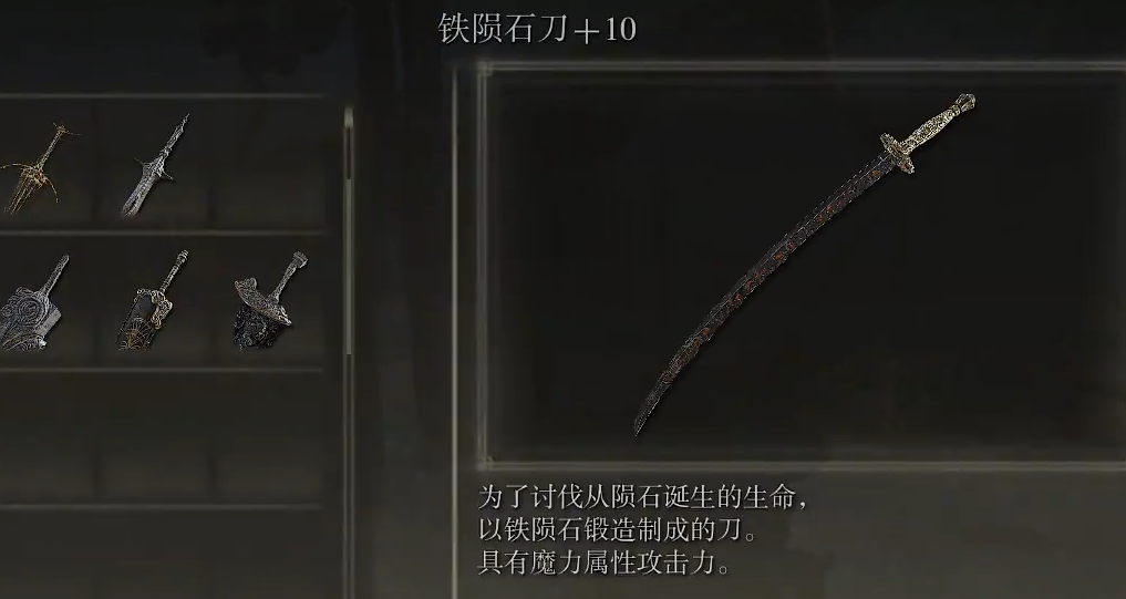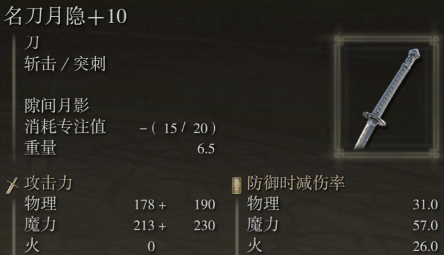 另一套备受推崇的双刀组合是名刀月隐与铁陨石刀构成的魔法武士刀流派,这套配置提供了物理、魔法与出血的复合伤害属性,应对场景广泛。名刀月隐以其独特的战技隙间月影著称,能释放削韧能力极强的远程剑气,是安全消耗与打断敌人动作的利器;铁陨石刀则自带重力战技,能在特定场合发挥控场作用。这套组合对玩家的属性有特定要求,需要兼顾力气、灵巧与智力,其优势在于兼具了出色的远程魔法攻击与近战搏杀能力,但两把武器均消耗珍贵的失色锻造石进行强化,在资源分配上需要更精心的规划。玩家在选择时,需根据自身倾向的战斗风格——是追求极限的出血爆发,还是青睐复合属性的均衡打击——来做出决定。