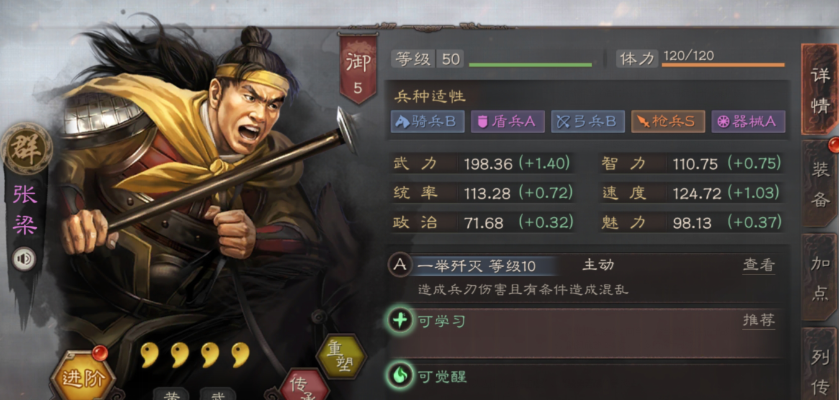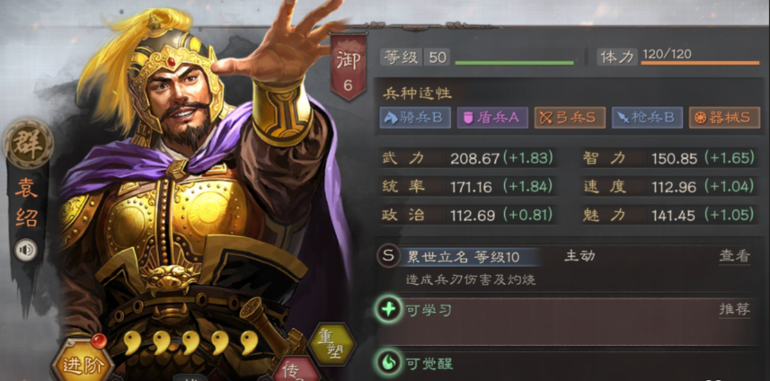 刘封作为蜀国四星武将,其器械适应性达到A级,是资源有限时组建拆迁队的理想选择,他的核心价值在于提供稳定的攻城值,并能通过特定战法在拆城间隙补充输出,适合与各类紫将、橙将混搭,专精于拆城任务。