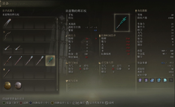 法师开局最重要的就是先保证自己的生存能力,建议先把生命值加到20左右,毕竟前期咱们的小身板确实比较脆。魔法值也需要同步提升到20左右,这样才能保证有足够的蓝量释放技能。智力属性是核心输出属性,但前期不用急着堆太高,先把基础生存能力拉起来更重要。武器方面优先选择学院辉法杖或亚兹勒辉法杖,这两把在智力没达到52点前都是不错的选择。