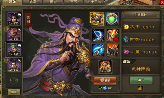 真驱虎套是关羽觉醒后的首选,该套装由两个部件组合而成,能显著提高攻击力、防御力和生命值。觉醒关羽的战法武神降临在平原地形具有范围伤害效果,搭配真驱虎套的加成可快速削弱敌方前排。若玩家更注重输出,真驱虎套的爆发属性可有效配合关羽的技能机制,尤其在PVP或速攻副本中表现突出。