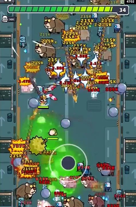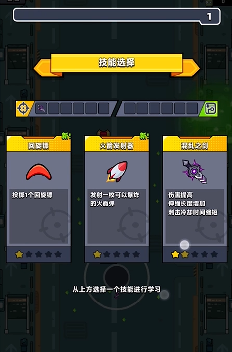 中期5-15分钟要逐步完善其他技能。榴莲和火箭发射器是清怪核心,范围大伤害高,建议优先升级。轮盘守卫者能抵挡子弹和击退敌人,适合应对远程怪潮。闪电发射器控制能力强,对精英怪效果显著。如果遇到怪物加速的情况,压制力场能有效减速,配合守卫者形成安全区。注意技能升级顺序别乱,避免前期伤害不足被怪围殴。