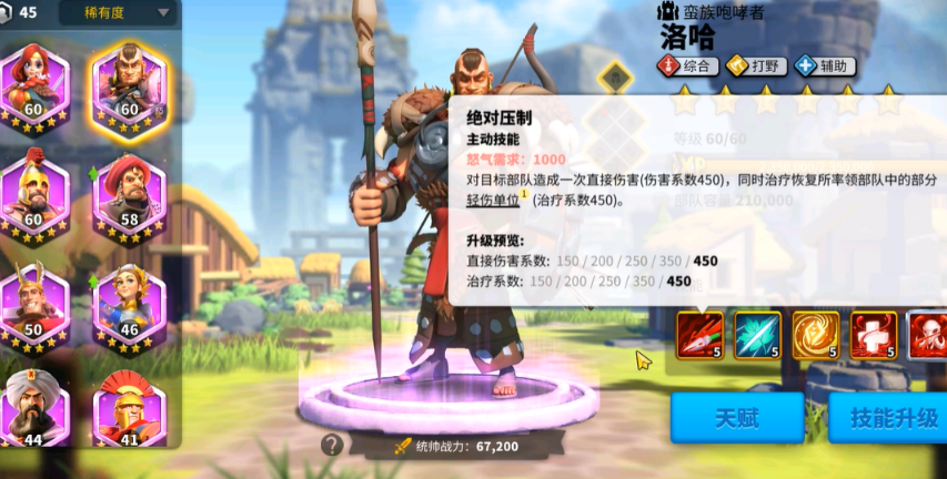 推荐主队选择洛哈或布狄卡这类专精打野的紫将,洛哈能提升70%经验获取,布狄卡增加25%伤害和额外经验。副队可用曹操或贝利撒留,他们的机动天赋适合快速转场。三星以上武将记得配置副将,副将也能共享经验。打野天赋优先点出洞悉减少体力消耗,以及战利清剿获取额外资源包。