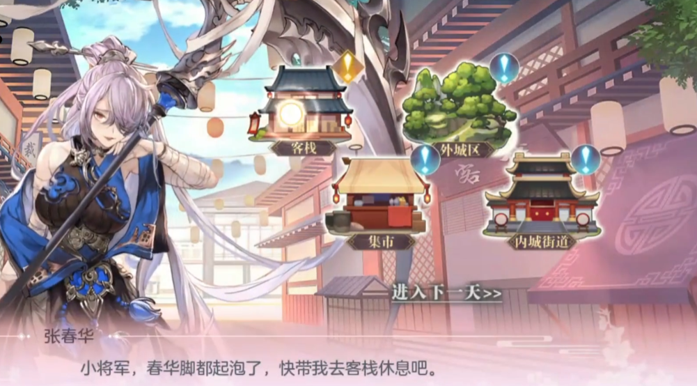 张春华的出游剧情设计注重角色性格与剧情逻辑的结合。例如她作为病娇属性角色,部分选项需体现对她的偏袒,如拒绝他人请求或优先满足她的需求。同时剧情中穿插的互动选项需符合故事背景,如第一天报官体现正义感,第二天劝说放下武器展现理性判断。