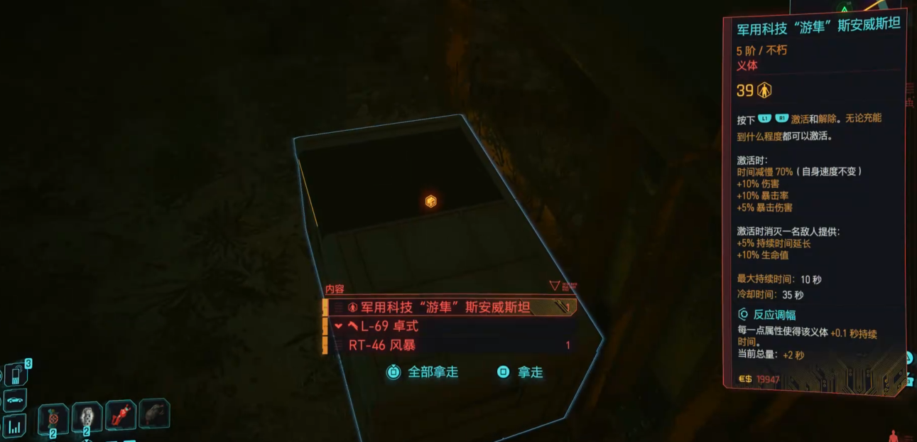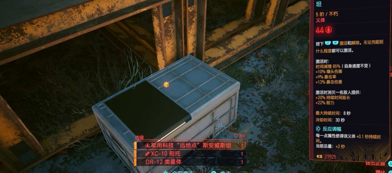 斯安威斯坦义体的核心功能是激活后大幅减缓周围时间流速,为玩家提供战术优势。该效果适用于近战突袭、精准射击或紧急撤离等场景。需时间减缓期间玩家的移动速度不会提升,因此需合理规划行动路径。义体的冷却时间较长,频繁使用可能影响战斗节奏,建议搭配其他义体或技能弥补短板。