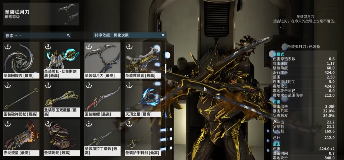 该武器的实战表现依赖其高触发率与强制切割效果,配合剑风Prime等范围类Mod可显著提升清怪效率。若未获得圣装版本,玩家可通过集团声望兑换终极螺钉弧月刀作为过渡,其基础属性与圣装版接近但缺乏Prime特效。