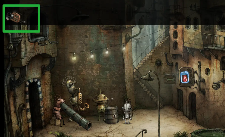 接着小伙伴要和老奶奶对话,她会提示墙上贴着一张带有符号的纸条。对照纸条上的符号调整时钟,机器人会被吸引下楼。这时候就能顺利拿到扩音喇叭,把它和之前捡到的收音机组装起来。组合好的收音机可以交给扳手先生,用来交换他修理水管的服务。