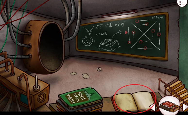 上了二楼会遇到第一个机关门,解开后能看到爷爷的时光机和黑板上的奇怪图案。笔记本最后一页被撕掉的密码页是关键,用铅笔涂抹能显示痕迹。这时候火柴还没用上,但别着急,继续推进剧情。到了码头把船票交给船员后,工厂和灯塔区域会开放,记得在工厂里拿到灯泡和三角石块,这些都是后续解谜必备的。