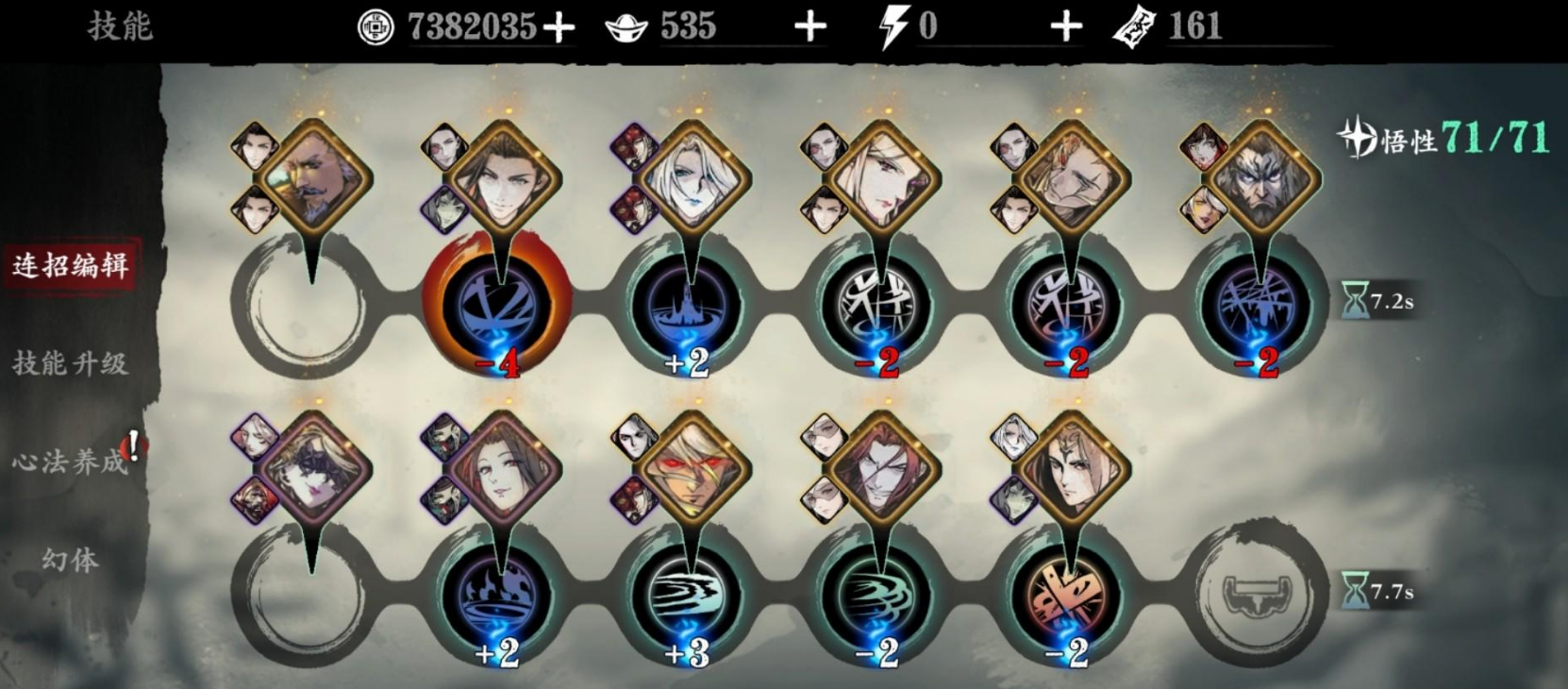 心法配置需服务于杜鹃啼血的伤害最大化,黑白剑(白衣留情+黑暗无情)的光暗羁绊可提供1.5倍攻击力增幅,是核心输出保障。魔堡故人、蛇眼、铁诞组成的邪道科技三件套能减少套装需求,便于搭配其他增益套装。杀意管理方面,需确保链上有足够杀意生成点,避免关键技能断档。心法升华至紫1星可激活羁绊升级,但需注意48点悟性限制下的合理分配。