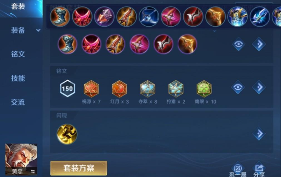 因为黄忠本身没有位移,大招又是站桩输出,所以铭文的选择要弥补他的短板,同时放大他的优势。红色铭文最常见的选择是祸源或者无双,祸源能提供更高的暴击率让前中期输出更稳定,无双则侧重于提升后期的暴击伤害,看你更喜欢哪种节奏。绿色铭文没啥争议,基本都带鹰眼,提供物理攻击和物理穿透,这是射手输出的保障。蓝色铭文的选择比较多变,如果你想对线续航能力强一点,可以多带几个夺萃,这样配合装备甚至能省下一件泣血之刃的格子出其他输出装;如果你觉得移速和攻速更重要,可以带狩猎或者隐匿。一套比较通用的搭配是红色祸源、绿色鹰眼、蓝色夺萃和狩猎混合,这样在攻击、穿透、续航和移速上都有不错的兼顾。