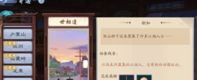 要在游戏里完成这个世相逢的新知奇遇,首先得把前置的线索给琢磨明白。这个奇遇的引子叫做聚集的江湖人,你得先把这个线索给解锁了。解锁系统就会给你派下任务指引,让你前往一个叫做修缘驿的地方。那里是江湖人士扎堆的聚集地,到了地方按照提示把任务接了,这第一步的新知任务就算是正式启动了。接了任务可不算完,关键的一步在于后续的操作。你需要找到游戏里的厨神商店,然后在里面用750个厨力币兑换一个特定的表情动作。这个动作是完成任务的核心道具,兑换到手在修缘驿那个江湖人聚集的场景里使用这个动作并拍照,这样新知环节才算是圆满达成。整个过程有点像拿着藏宝图按图索骥,线索和地点环环相扣,缺了哪一步都可能会卡住。