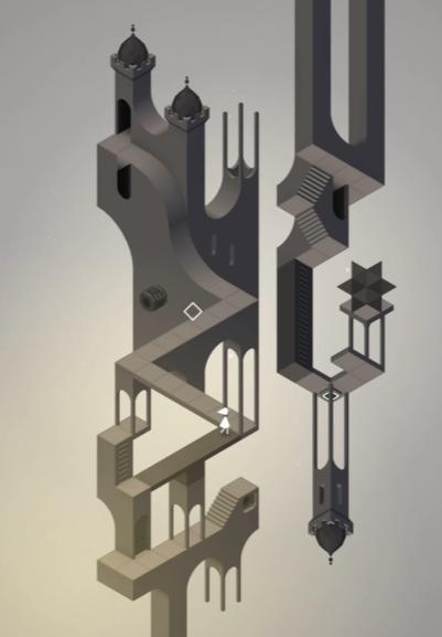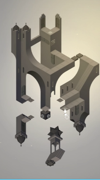 进入第二个主要场景后,你会看到一个深灰色的轮轴。转动这个轮轴是推进进程的关键,通过旋转整个建筑结构,可以让艾达顺利到达指定位置。沿着出现的道路继续前进,进入上方的门洞后,会触发新的机关。踩下这个机关按钮,通常会使左侧的建筑墙上出现另一个轮轴,从而解锁更多的可操作部分。环境会因此发生变化,引导玩家进入更为复杂的第三个场景。