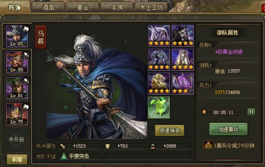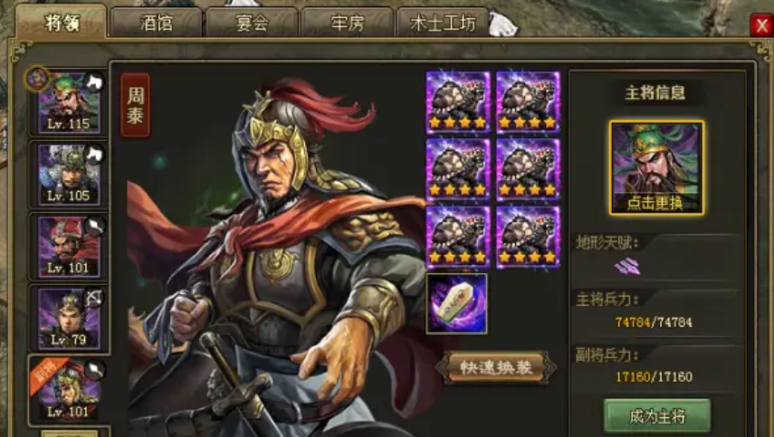 要成功通过五将关卡,关键在于武将搭配、装备配置以及战术选择。首先需要明确的是,五将关卡对玩家的综合战力要求较高,因此在挑战前必须确保武将等级、技能和装备达到一定水准。步兵武将适合承担坦克角色,骑兵武将则擅长快速突袭,弓兵武将负责远程输出,特