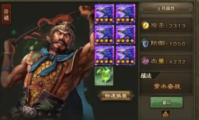 许褚作为山地防守型武将,最适合的套装是朱雀套装和铁壁套装。朱雀套装能大幅提升战法爆发力,让他在战斗中快速压制敌人,尤其适合搭配战法型技能使用。铁壁套装则能增强生存能力,提高抗性和硬直效果,让他在前线更持久。这两种套装都能充分发挥许褚的山地加