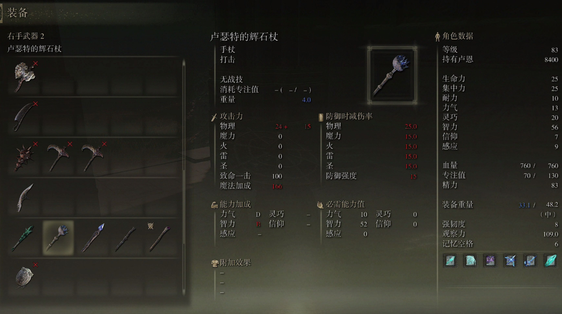 混合流派的加点更灵活,比如近战法师可以智力加到60,力量或敏捷点到20左右,既能用魔法远程消耗,也能用近战武器补刀。生命力建议40集中力30左右,这样平衡性更好。信仰感应流则适合喜欢龙息或异常状态的玩家,感应加到45以上能大幅提升出血或毒性的触发概率,信仰加到30左右可以搭配一些实用的祷告。这类流派对操作要求稍高,但玩起来非常有趣。