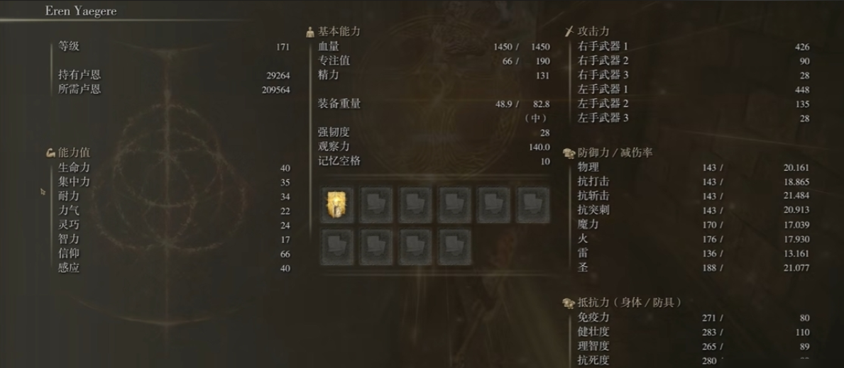 171级是一个比较均衡的等级,既能保证足够的属性点分配,又不会因为等级太高而影响联机匹配。对于法师流派来说,智力是核心属性,建议优先加到70左右,这样能充分发挥大部分强力魔法的威力。生命力推荐点到40,保证有一定的生存能力,避免被敌人秒杀。